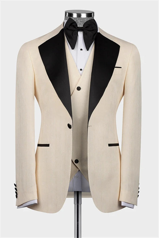 Beige Slim-Fit Blazer 3-Piece Suit & Bow