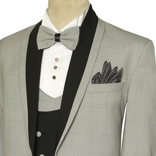Black and Grey Contras Shawl Lapel Tuxedo Suit With Bow And Pocket Square