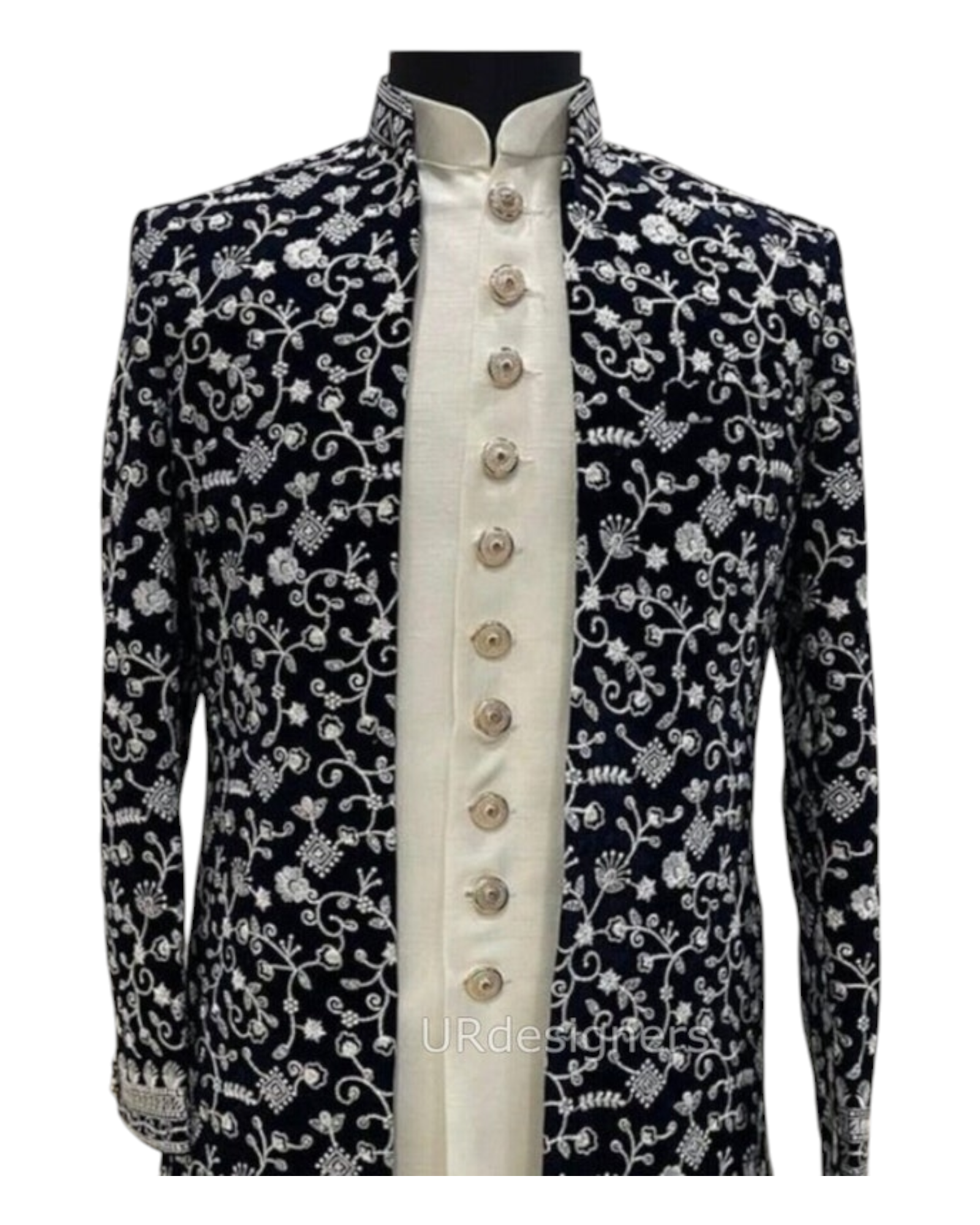 Black Valvet Thread Embroidery Work Prince Indo-Western Suit