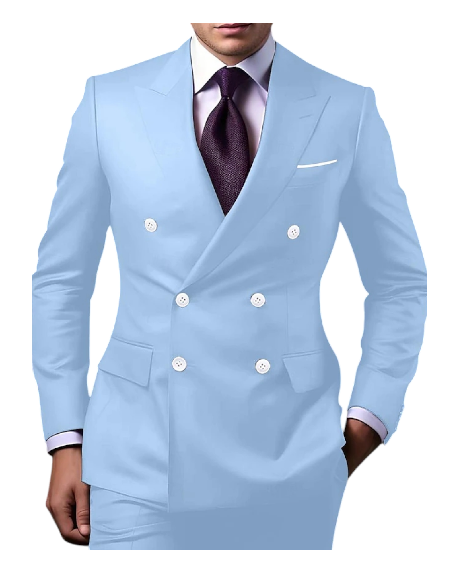 Elevate your style with our impeccably tailored double-breasted suit, a timeless choice for the modern gentleman. Crafted with precision and attention to detail, this suit exudes sophistication and refinement, making it a must-have addition to your formalwear collection.