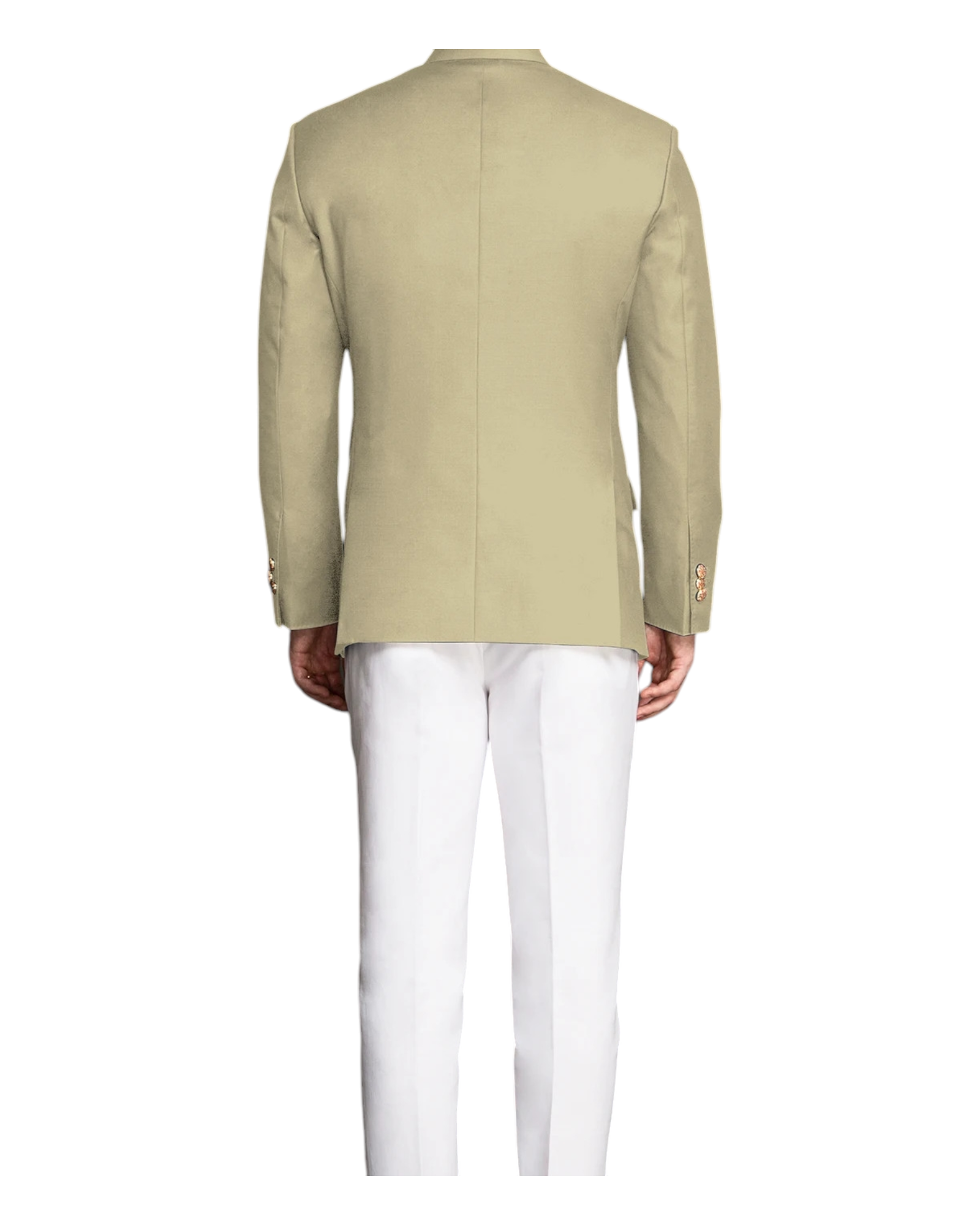 Elevate your style and sophistication with the Khaki Wool Jodhpuri Suit. Made from Super 120s Italian wool, this suit boasts a delicate silhouette and is paired with white Italian cotton trousers for a polished look. Hand-painted buttons from Jaipur adorn both the jacket and trousers, adding a unique touch to this already elegant ensemble.