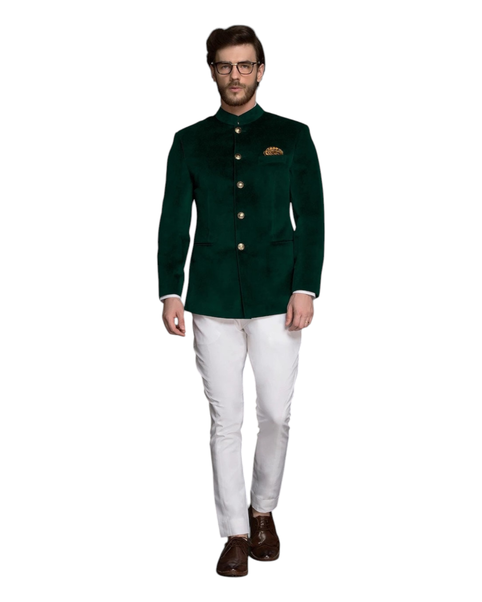 Men Luxry Slim-Fit Green Velvet Jodhpuri Suit , Stylish Bandhgala Suit