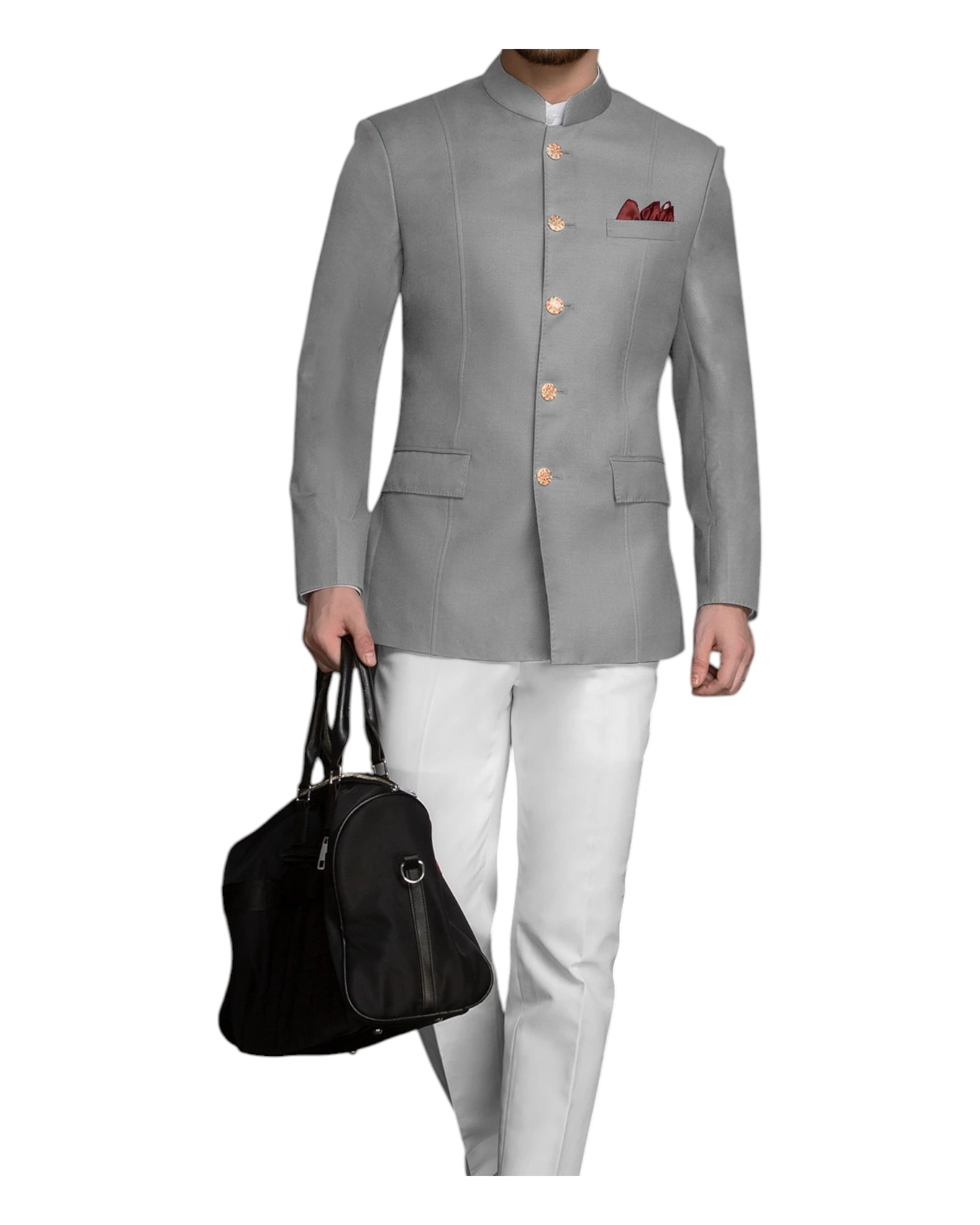 Men's Slate Gray jodhpuri Suit With White Formal Pant